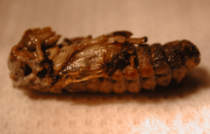Apate terebrans, als weibliche Puppe (25mm), im Puppenstadium. Foto: Rüpke |